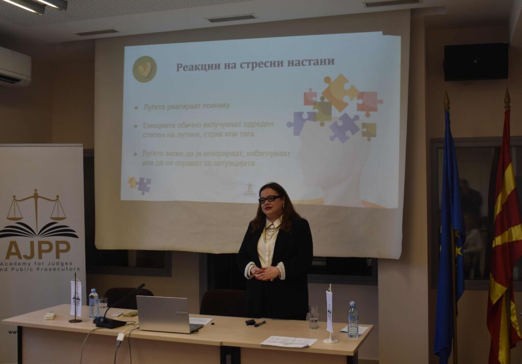 Академијата за судии и јавни обвинители реализираше обука на тема: „Техники за менаџирење со стрес“, која се одржа денес (25 февруари 2026 година) во просториите на Академијата на која учествуваа повеќе од 50 судии, јавни обвинители, стручни судски и јавнообвинителски службеници.